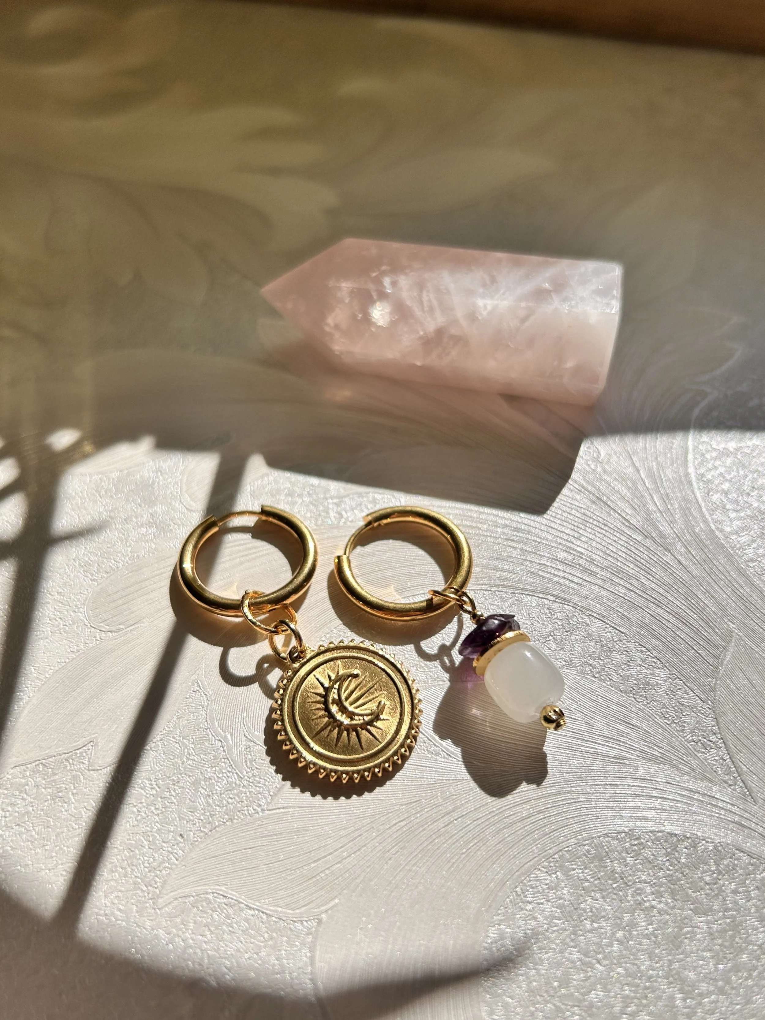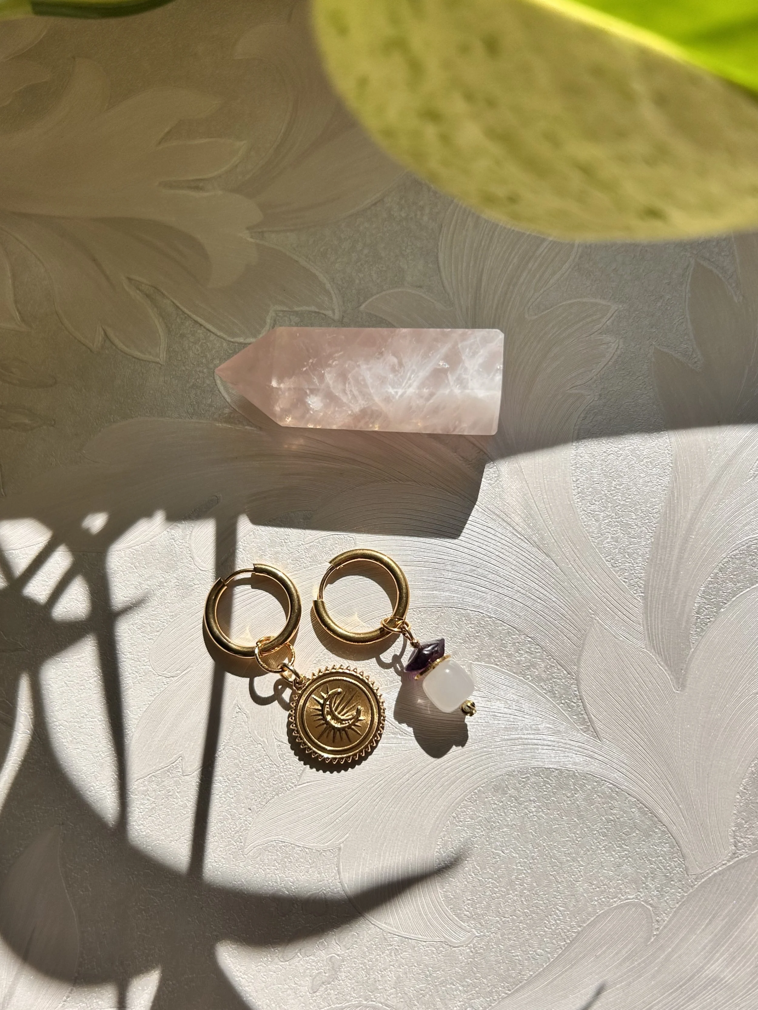 Dorées ◦ Boucles d'oreilles Créatives ◦ Améthyste et main