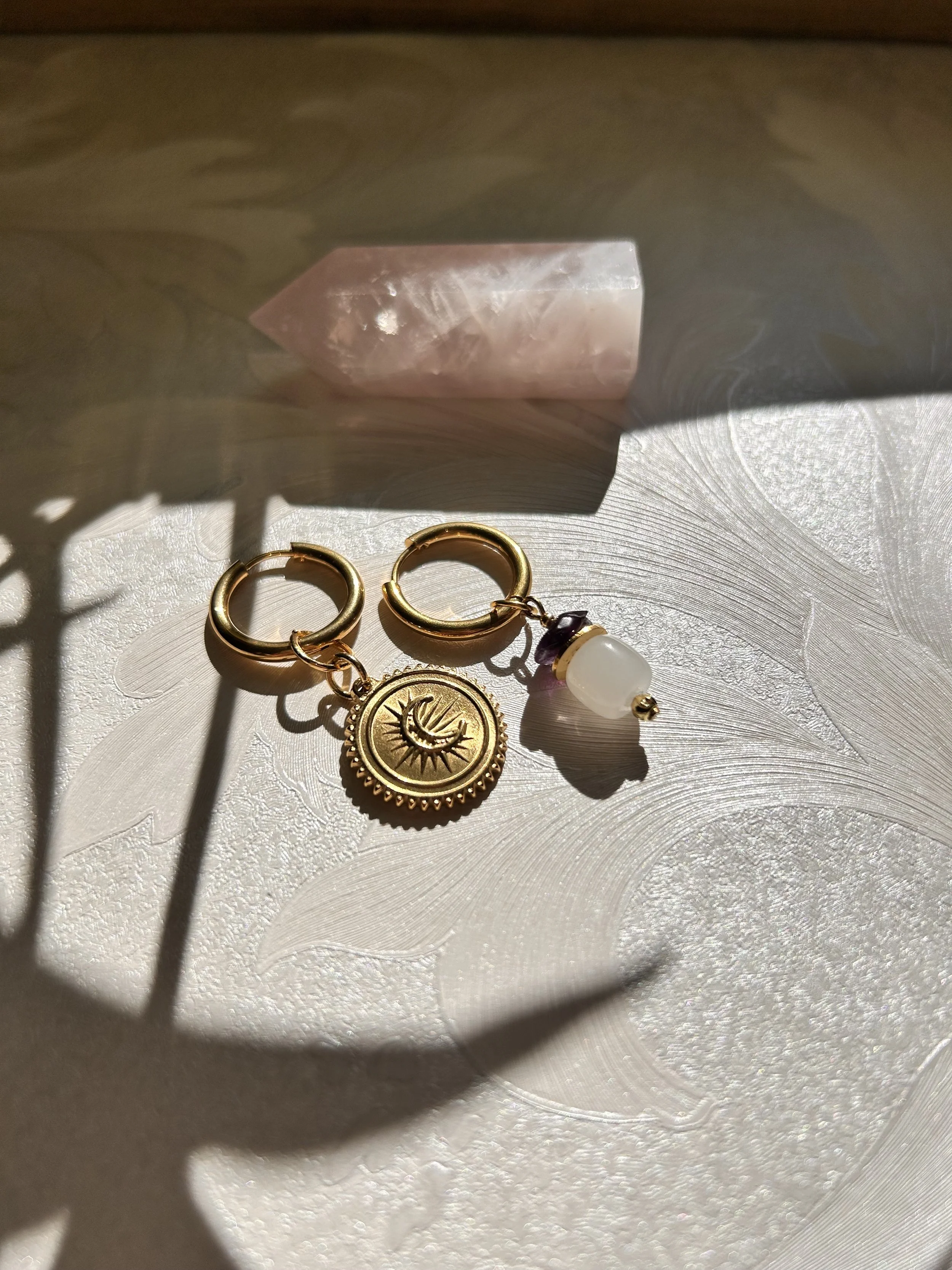 Chaque pierre est une pièce unique : la forme et la couleur peuvent légèrement varier d’une paire de boucles d’oreilles à l’autre.