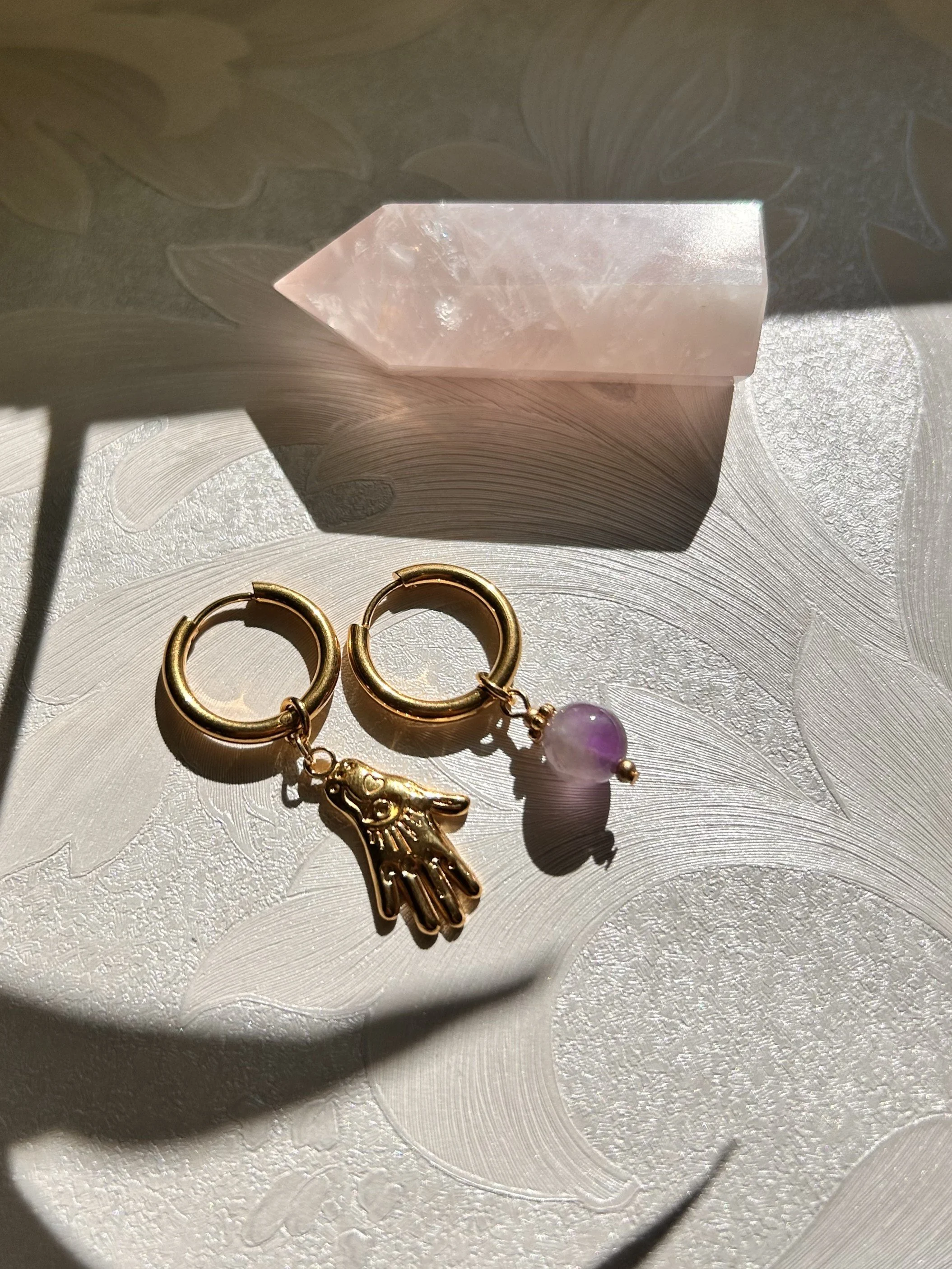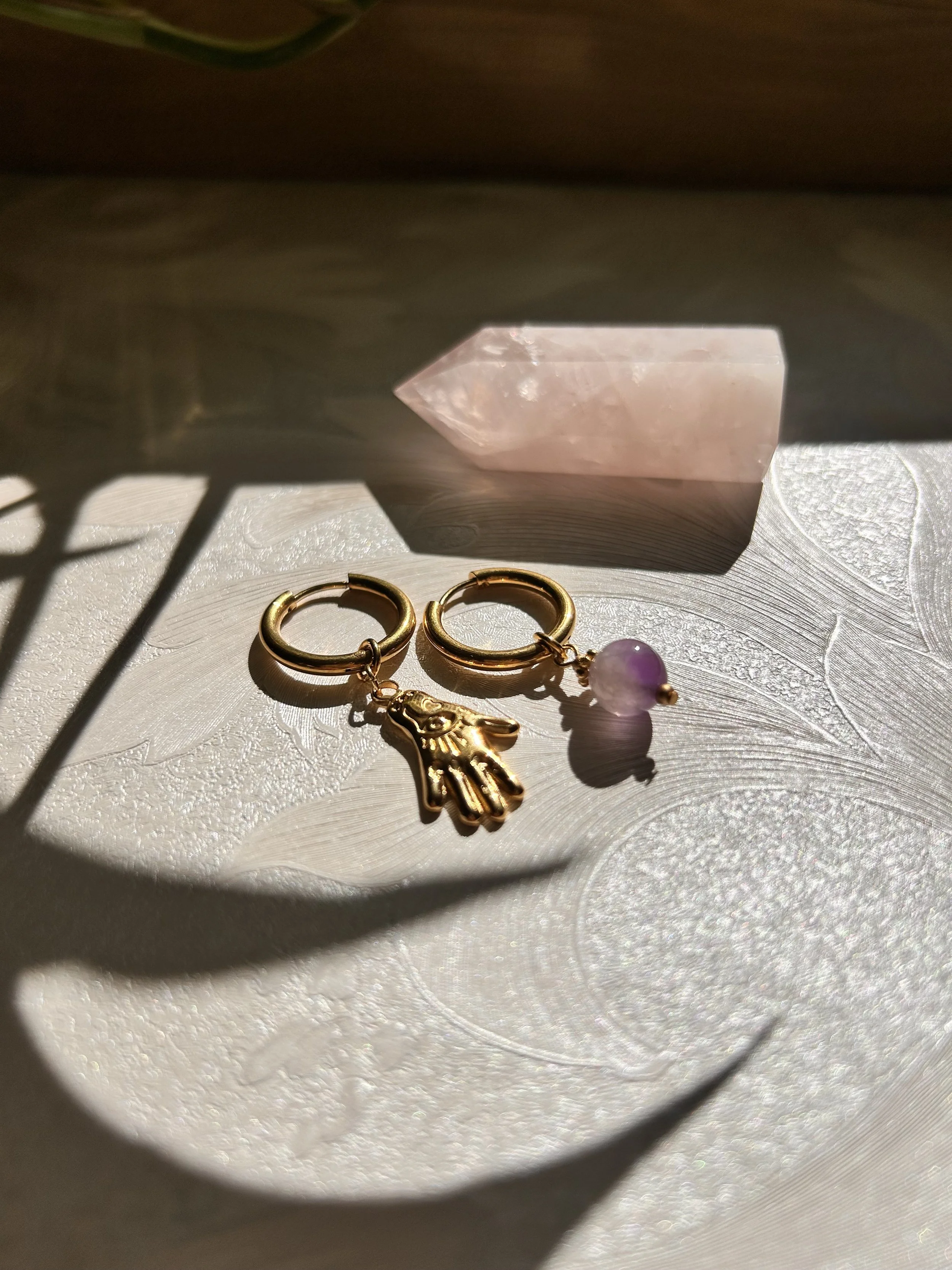 Dorées ◦ Boucles d'oreilles Créatives ◦ Améthyste et œil