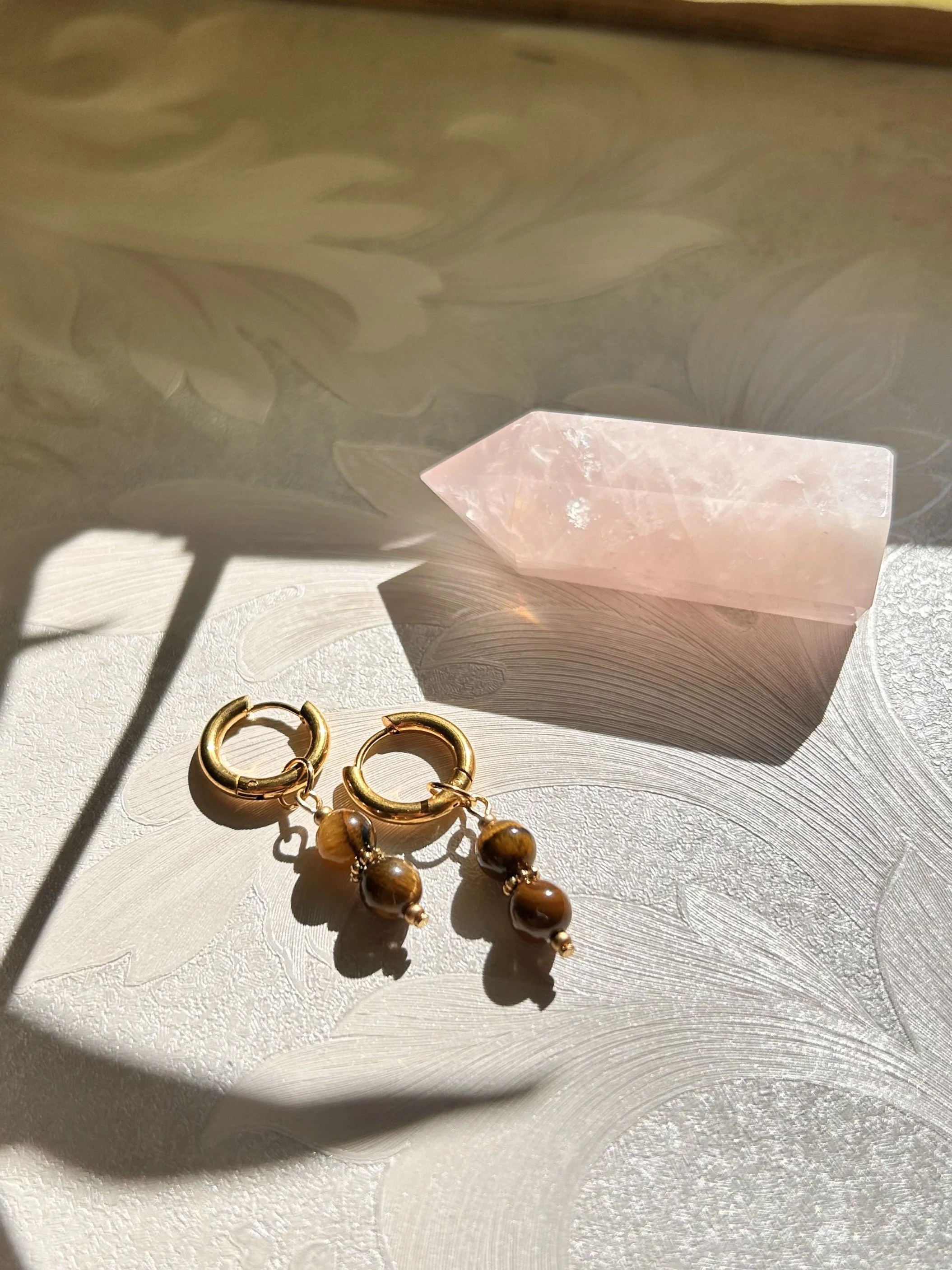 Chaque pierre est une pièce unique : la forme et la couleur peuvent légèrement varier d’une paire de boucles d’oreilles à l’autre.