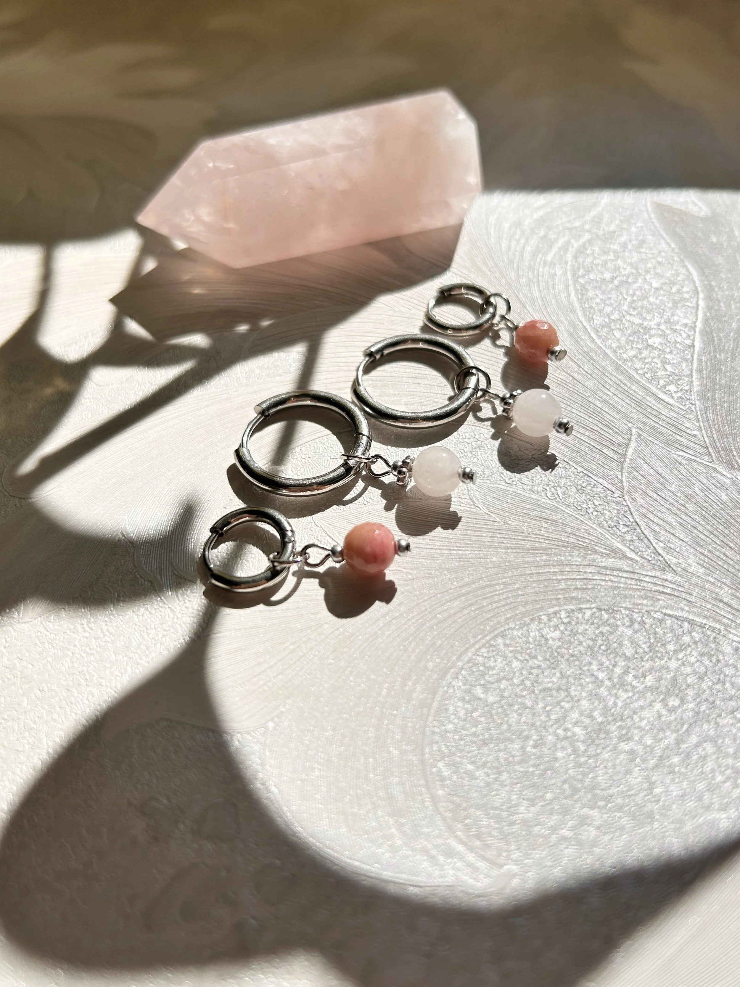 Chaque pierre est une pièce unique : la forme et la couleur peuvent légèrement varier d’une paire de boucles d’oreilles à l’autre.