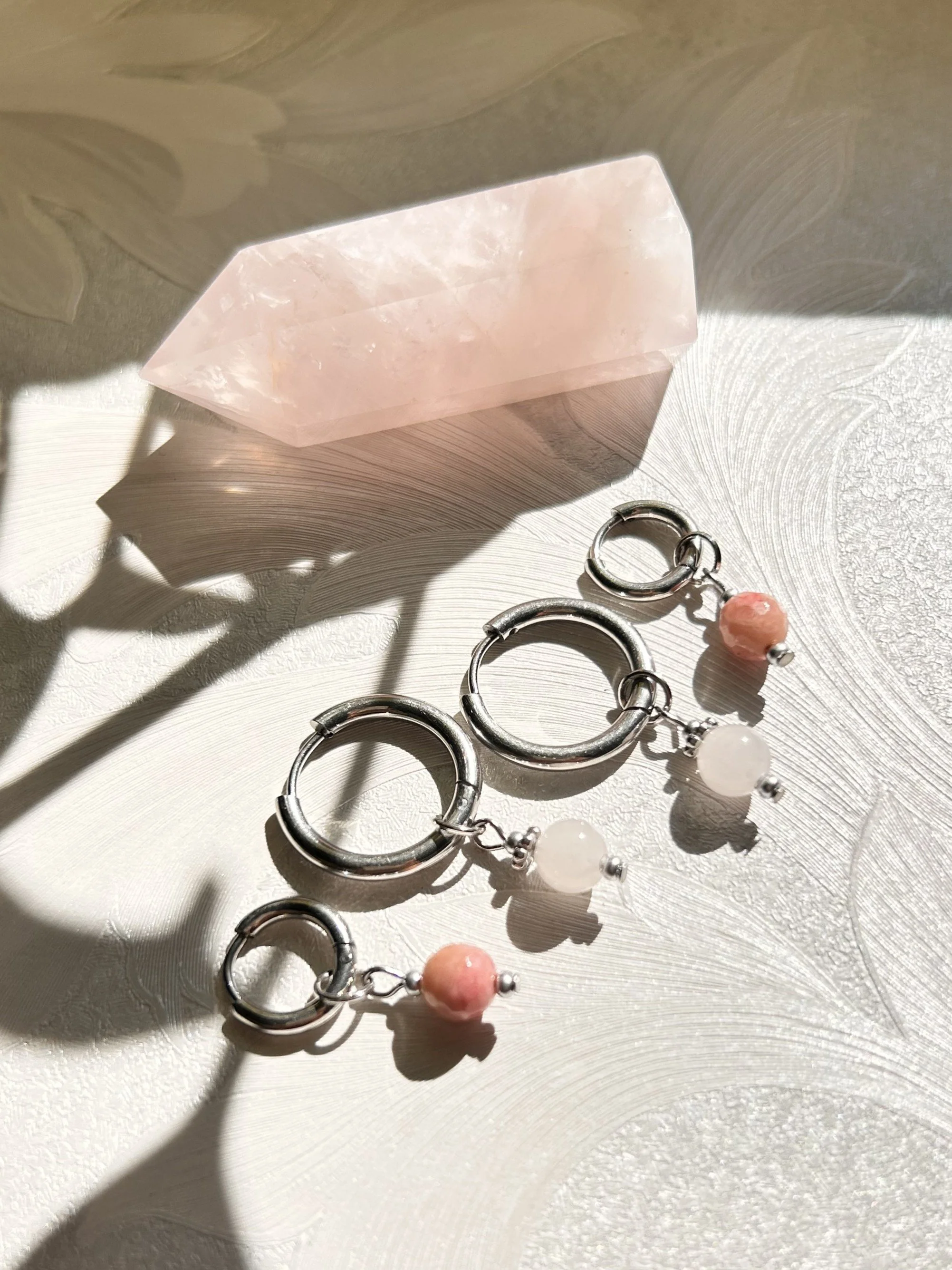 Dorées ◦ Boucles d'oreilles ◦ Quartz rose